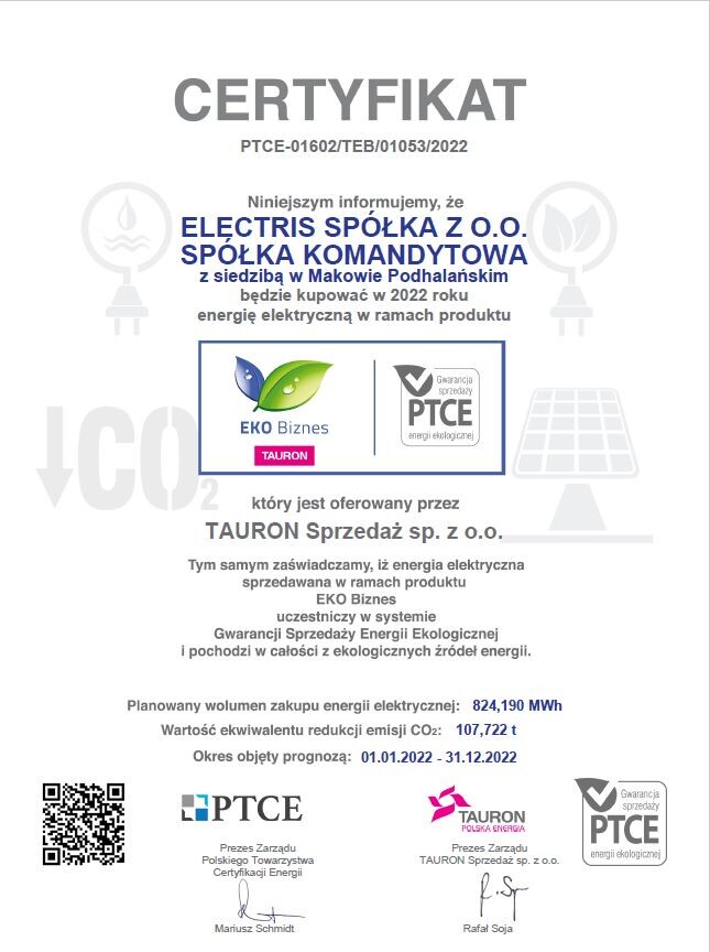 L'énergie que nous utilisons provient de sources 100% renouvelables. Grâce à cela, rien qu'en 2022, nous avons émis dans l'atmosphère 107 tonnes de CO2 de moins que les années précédentes.