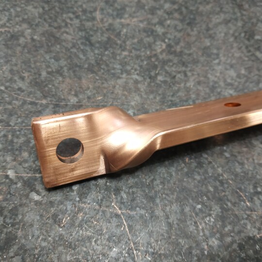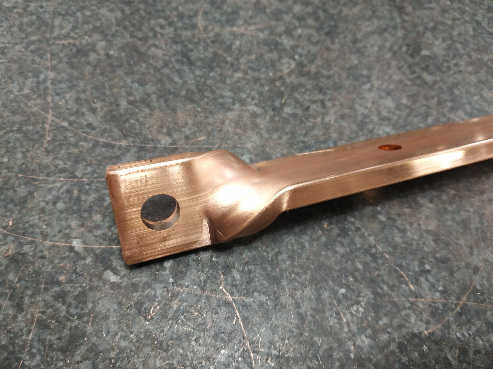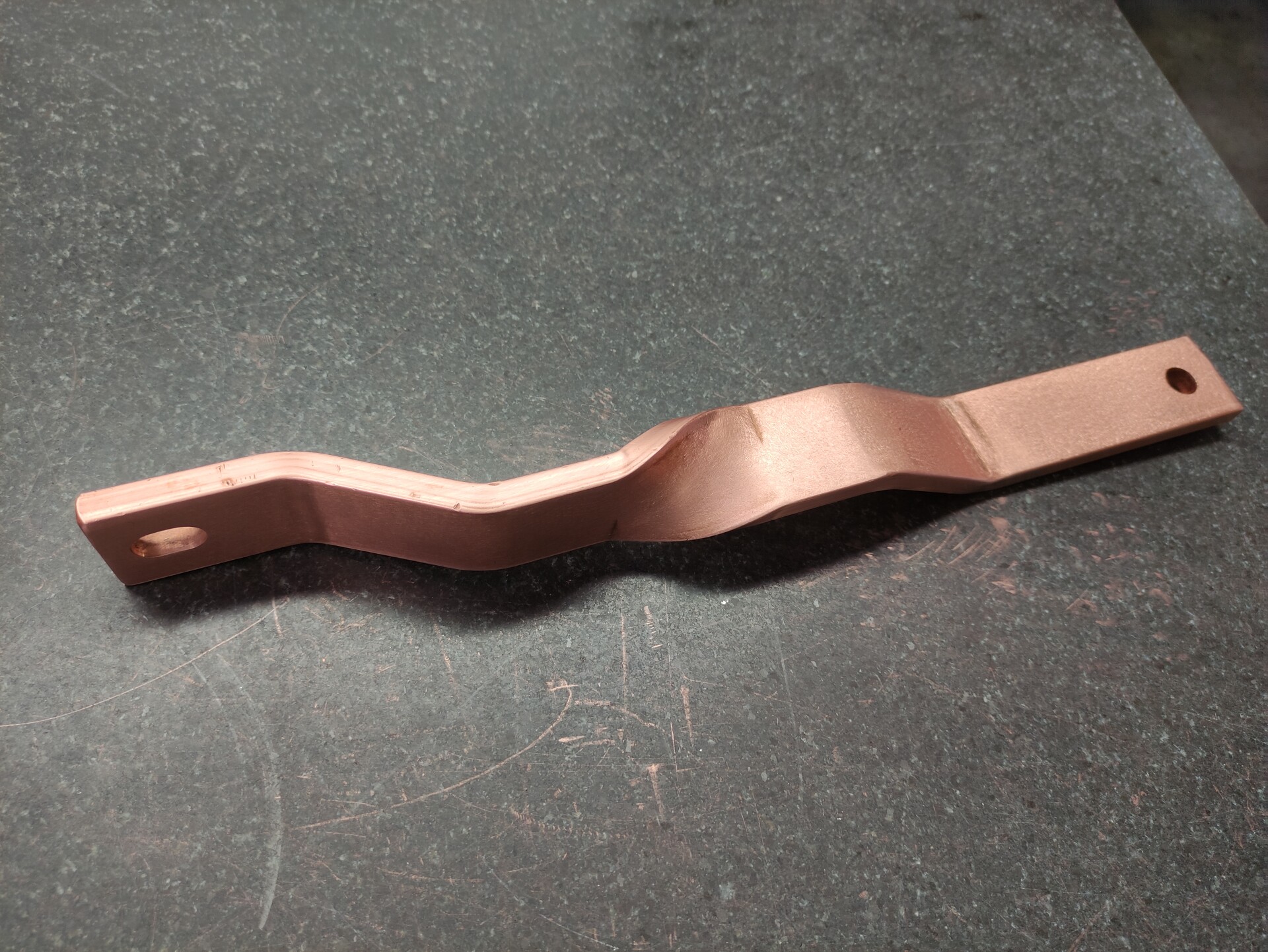 Nos clients peuvent commander un processus de pliage entièrement personnalisé : allant de petites pièces avec un seul pli à des pièces plus grandes et complexes avec de nombreux plis différents, qu'il s'agisse de composants en plaque de cuivre ou de sections jusqu'à 30 mm d'épaisseur.