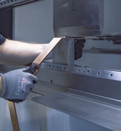 Le pliage des tôles et des métaux, comme le cuivre, est un procédé d’usinage qui consiste à modifier de façon permanente la courbure de la pièce, sans perte de matière. Ce procédé permet de créer des objets entièrement nouveaux, dotés d'une large fonctionnalité, à partir de plaques ou de barres plates en cuivre. Notre société utilise des presses plieuses ultra-modernes. Les plieuses CNC nous permettent d'obtenir des résultats de pliage optimaux et sans erreur, une précision de répétition et une qualité de processus très élevée.