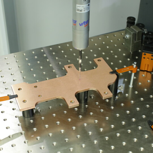 Le laboratoire de mesure d'Electris permet de fournir le plus haut niveau de service à tous les clients. Il héberge des machines de mesures tridimensionnelles CMM (ang. coordinate measuring machines) avec une plage de mesure de 1 500 × 1 000 × 800. Il s'agit d' un équipement qui permet d'effectuer des mesures spatiales des composants métalliques complexes que nous produisons. Les résultats sont caractérisés par une grande précision. Les composants mesurés par les CMM peuvent être de n'importe quelle forme complexe et la mesure est extrêmement précise. La seconde machine CMM, qui fait partie du laboratoire Electris, a une plage de mesure de 500 × 500 × 500. Le point fort de nos machines de mesures tridimensionnelles de pointe est le bras de mesure, qui a une portée de 1,2 m et peut être utilisé pour des mesures 3D très précises sur des distances plus courtes.